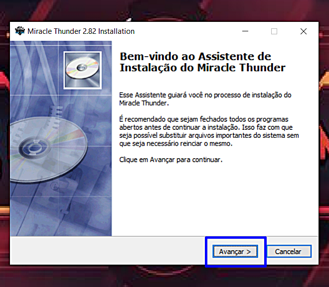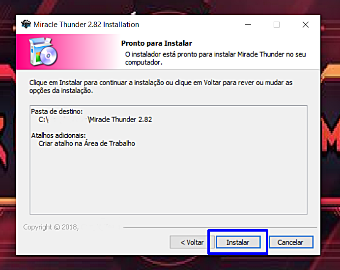 Você vai executar o aplicativo XTM_Miracle Thunder 2.82 Setup