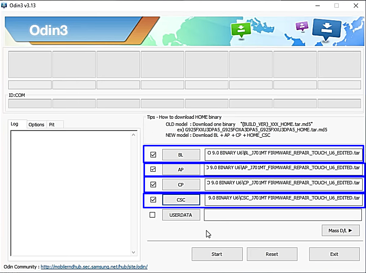 Clica em BL e vai até a pasta da sua rom modificada e seleciona o arquivo BL_J701M ou BL_J701MT depende da versão que voce esta instalando.