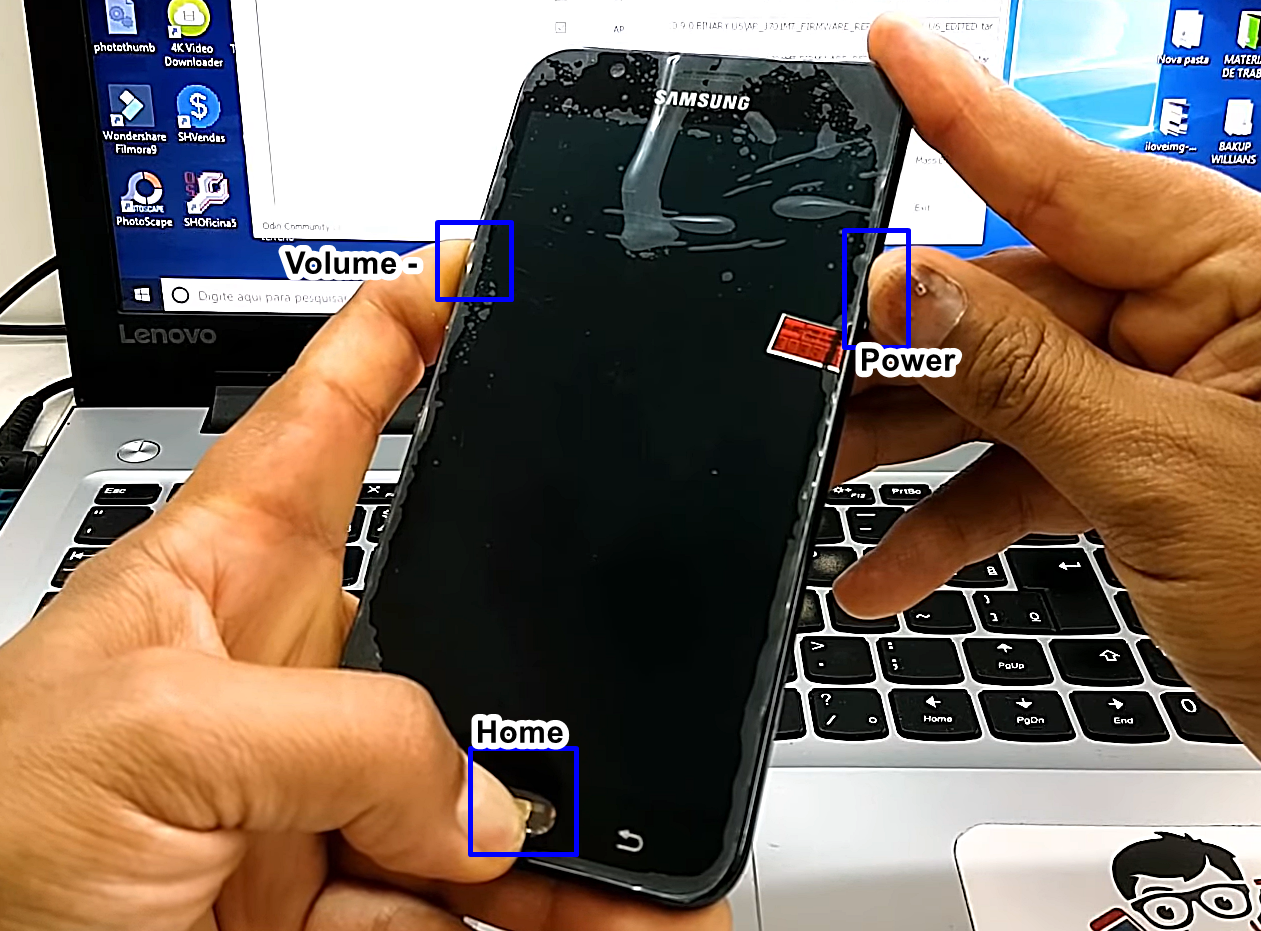 Aperta o botão VOLUME -, o HOME e o POWER(liga e desliga) e fica segurando ate o celular entrar na tela Warning, ai sim você solta todos os botões e da um toque no botão VOLUME +, pronto o aparelho já esta em Modo Download.