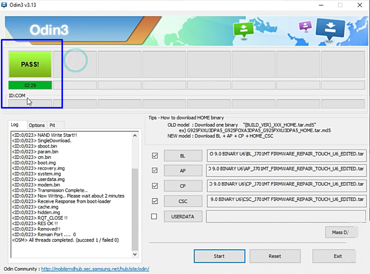 Assim que o Odim dar PASS e ficar verde o celular já vai reiniciar com o touch funcionando perfeitamente, pode ser que demora alguns minuto na inicialização então aguarde.